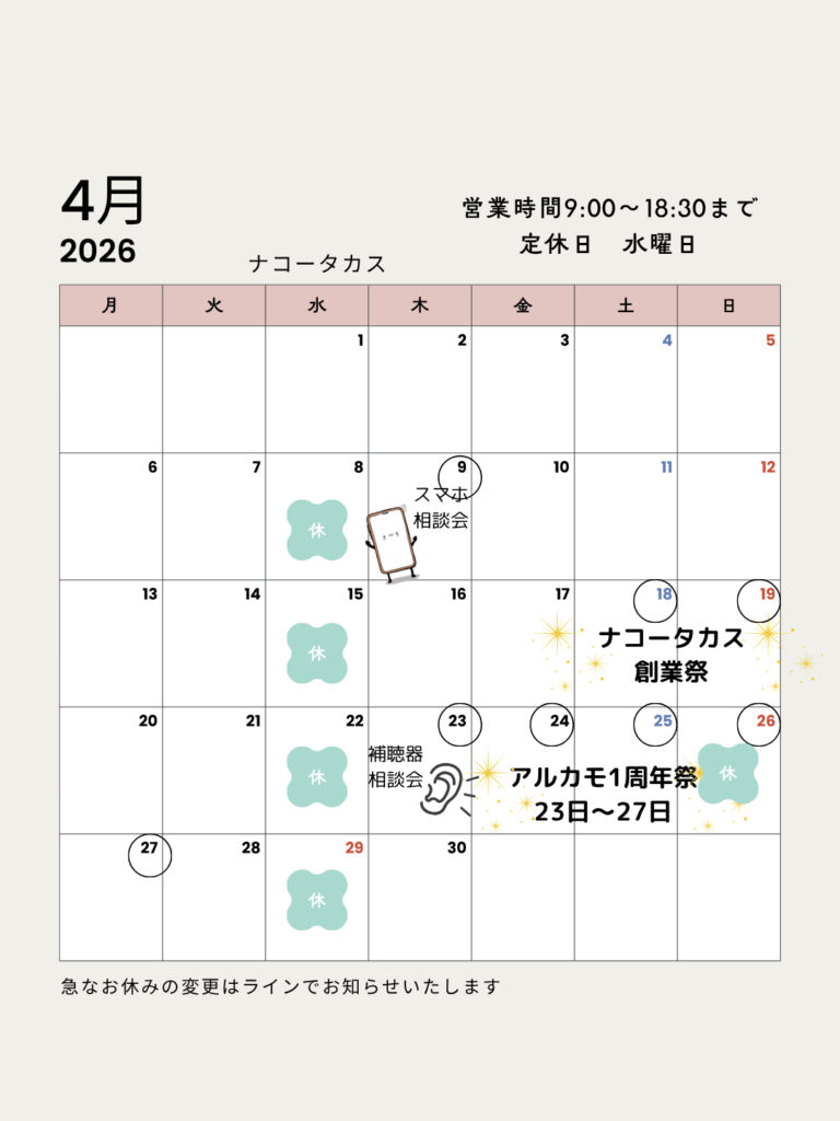 2026年4月営業カレンダーはこちらです
